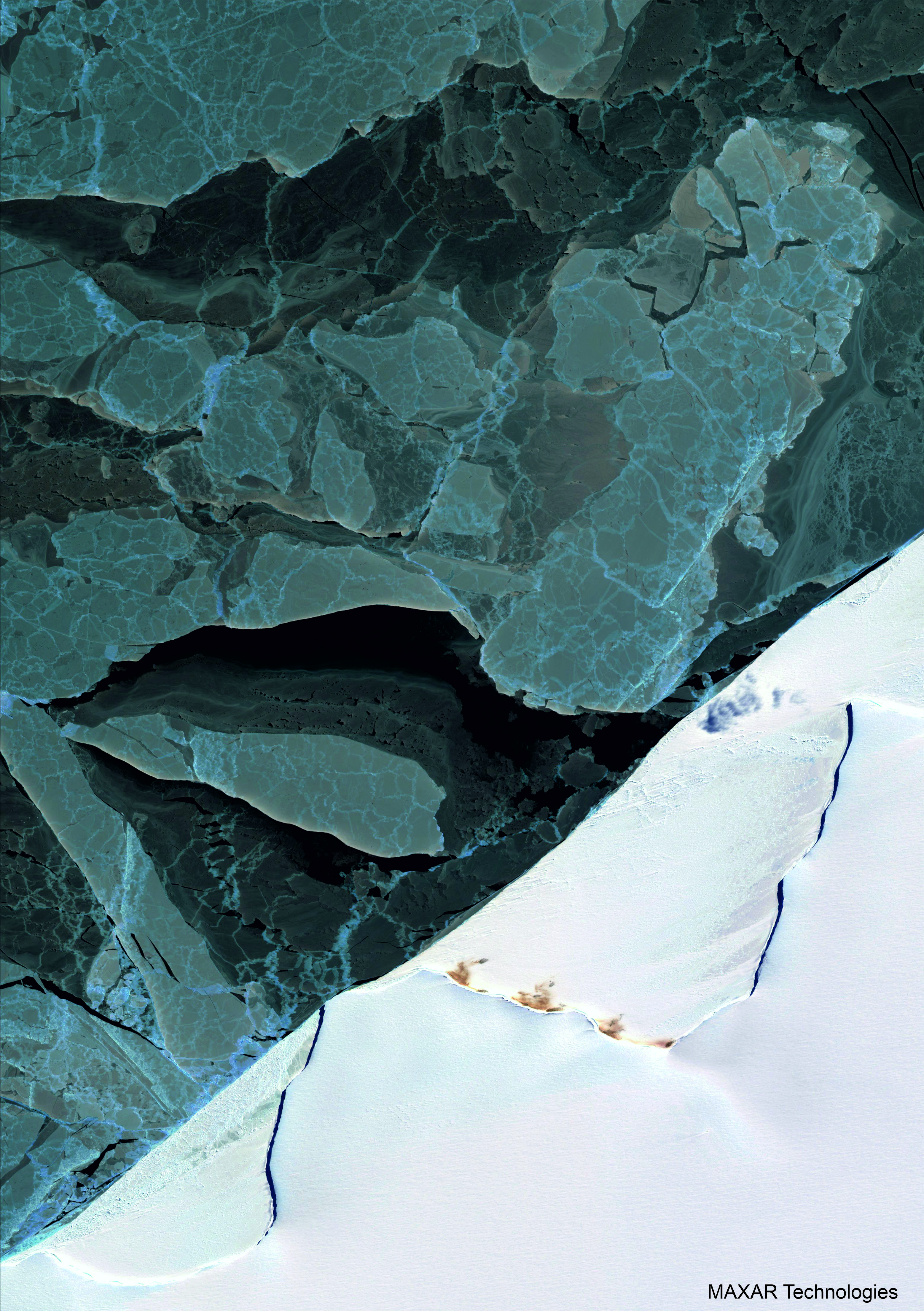 Halley Bay emperor penguin colony. Satellite image ©2025 Maxar Technologies.